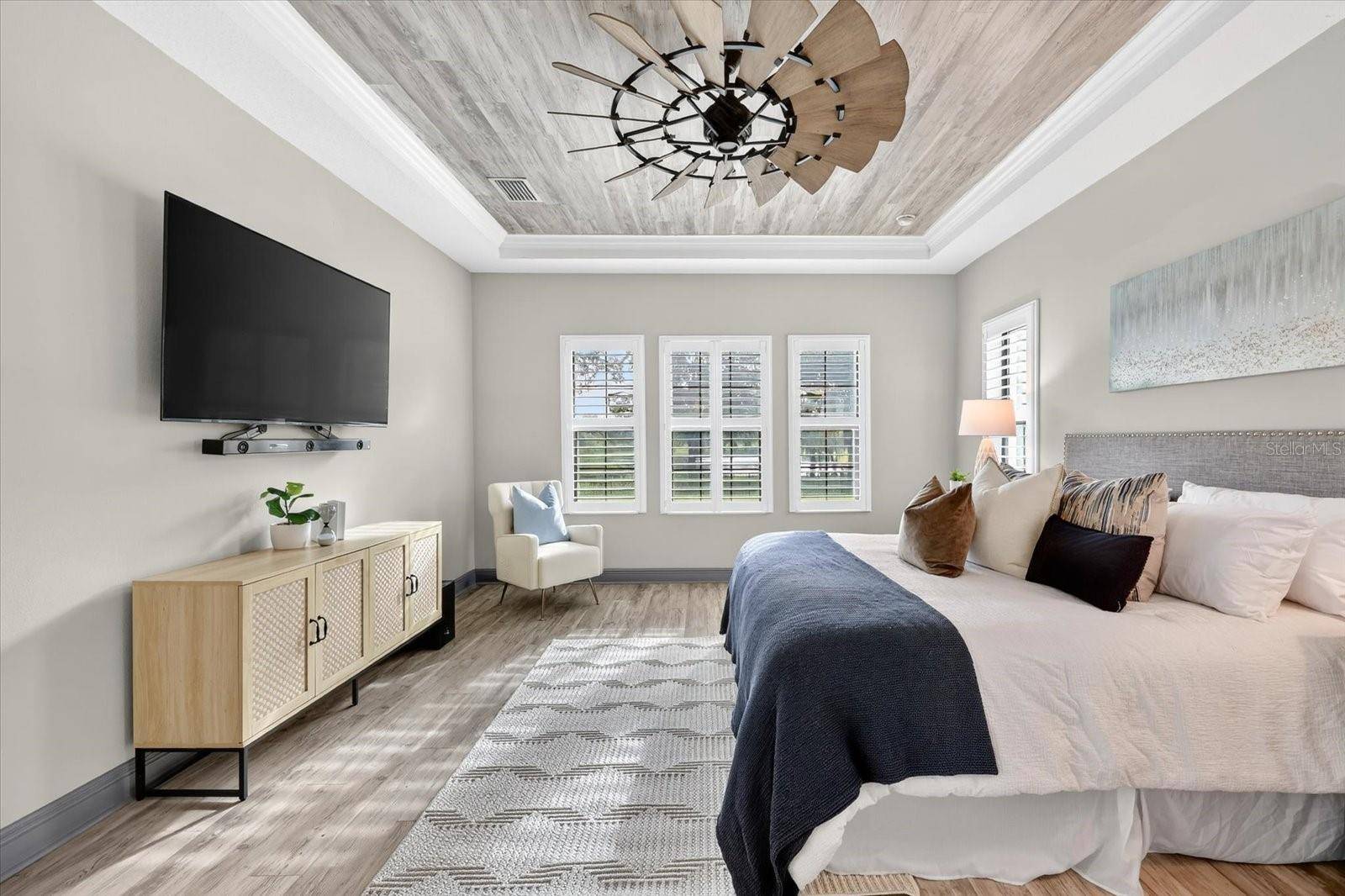 Once In a Lifetime Opportunity Awaits – Truly A “Unicorn”– Your Forever View Waterfront & Conservation, Corner/End Lot, Cul-De-Sac, Nearly New Home Loaded with Custom Upgrades, 2.5% Assumable VA Loan for Qualified Veterans $510k balance, A-Rated Schools, Gated Community with Tons of Amenities, Act Now Before It's Gone! You'll fall in love with the privacy of this home and lot – nothing compares to this offering in any comparable community. Inside, stunning brick mason-installed Chicago brick feature walls line the kitchen, grand room, laundry room, and primary suite bathroom. The kitchen has top-of-the-line appliances, including a rare 48” built-in fridge, gas cooking appliances, and a farm sink. Additional owner upgrades include UV/privacy film on all windows/doors, two handmade sliding custom barn doors, designer lighting and paint, 5-mil luxury vinyl plank flooring installed throughout, closet built-ins, video/audio/camera smart technology installed that conveys, water softener, hanging rack storage in garage, and more! Located in the gated Hawkstone Artisan community, this home is zoned for the highly sought-after Newsome High, Barrington Middle, Pinecrest Elementary School. Builder options include five trayed ceilings, 10-12' ceiling height, heavy crown and base trim, extended cabinets in the kitchen, upgraded cabinetry and quartz counters throughout, 24' sliding glass door, extended lanai, and a deluxe oversized shower in the primary suite. The Biscayne is a fantastic open living floorplan, providing seclusion for the owner's retreat and secondary bedrooms. The heart of the home is the combined grand room, gourmet kitchen, and casual dining area, with access to the outdoor living space featuring a large, covered lanai. 12-foot ceilings in the foyer, grand room, and kitchen complement the open design. Hawkstone residents enjoy resort-style amenities, including a lagoon pool with a splash pad, fitness center, dog park, community trails for walking, pickleball and bocce ball courts, playgrounds, and ponds. Community is located close to Triple Creek and Lithia Springs, with pet-friendly hiking at the 969-acre Triple Creek Nature Preserve, less than 2 miles south, or try bicycle motocross at Triple Creek BMX, 1 mile south of Hawkstone. This family-friendly neighborhood truly has it all!